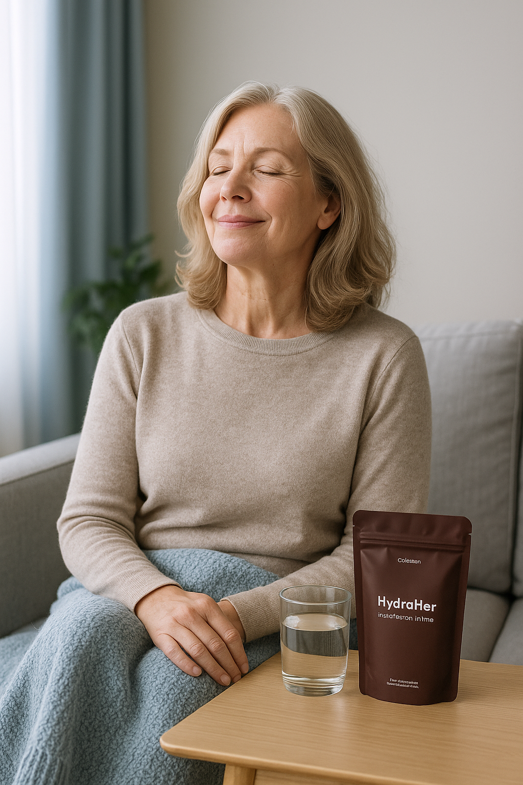 La combinación de ingredientes de origen natural está pensada para acompañar la sensación de hidratación interna y reducir la incomodidad asociada a la sequedad típica de la menopausia y el postmenopausia.